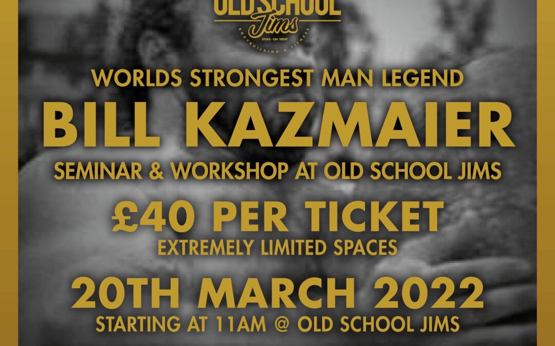 We’re extremely happy to announce that on the 20th March 2022 we’ll be playing host to 3 x WSM Legend Bill Kazmaier. Places are strictly limited, and will give you the opportunity to spend some quality time with Bill in our large studio, where Bill will talk about his life and how he got into strongman, we’ll then have a short break before moving into our 2000 sq ft strongman room where they’ll be a hands on workshop with the legend himself.